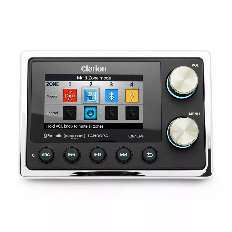 Clarion’s CMS4 is the ultimate media hub, developed to enhance the user interface and audio experience. It comes jam packed with entertainment options including Bluetooth aptX®, USB, Dedicated Camera and Audio RCA Inputs, SiriusXM, and AM / FM / Weather Band. True 4 Zone, Source Volume Control, and a 7-Band Equalizer ties it all together and makes it easy to customize your listening experience to meet your exact needs.