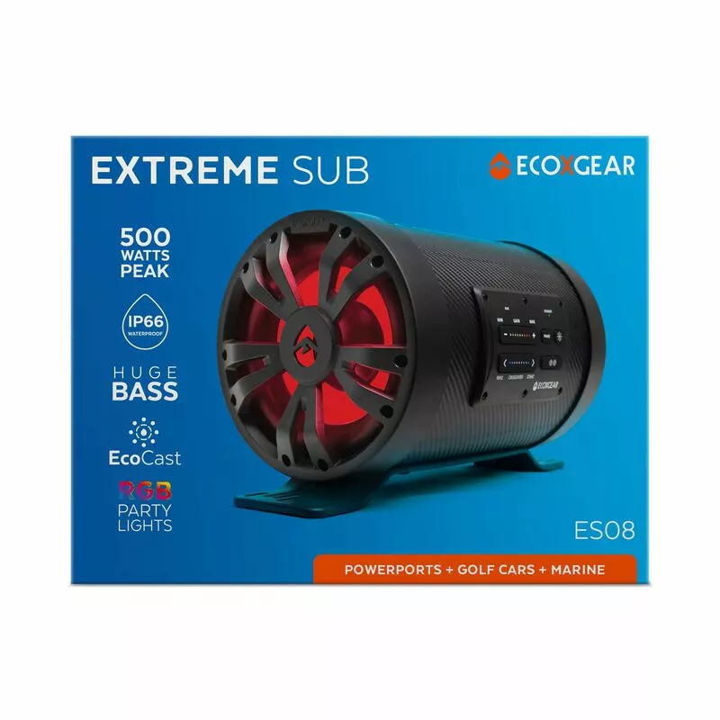 The 100% waterproof and dustproof (IP66) enclosure is optimized for harsh environments from the heat of the desert to salty sea air. ECOXGEAR Extreme subwoofers are designed with all the connections to be “plug & play” with any brand soundbar and automatically connect ECOXGEAR SoundExtreme soundbars via our proprietary wireless EcoCast protocol.