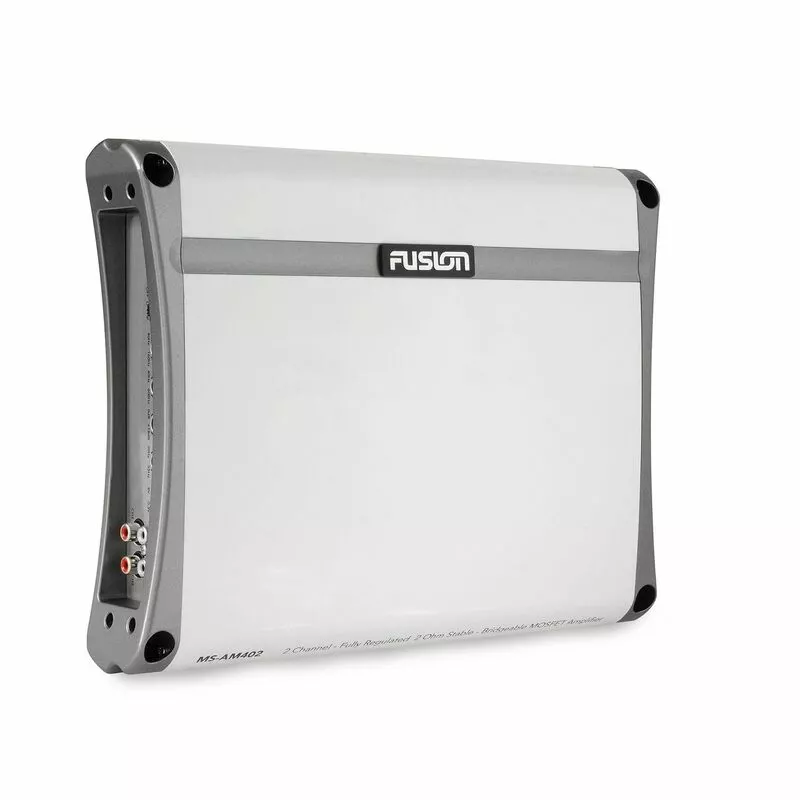 - Excellence in Sound: This amplifier’s 400W Peak output per speaker can be channeled to enhance many configurations of speakers on your boat. To maximize your sound, we recommend two speakers, two subwoofers or four speakers when you install two pairs of speakers in parallel (sold separately). This amplifier is a two-channel Fusion AM Marine amplifier that couples low battery drain with high-quality sound and reduced cross-over distortion. This combination is vital for entertaining on a boat, and the MS-AM402 was built with that in mind.