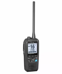 Active noise-canceling software quiets background noise by up to 90 percent on both outgoing and incoming calls. The built-in GPS receiver shows your current position and time and can be used for DSC calls.  Featuring “smart touch” soft key human interface, AquaQuake™, IPX7 waterproof rating and direct compatibility with ICOM’s MA-500TR AIS transponder.