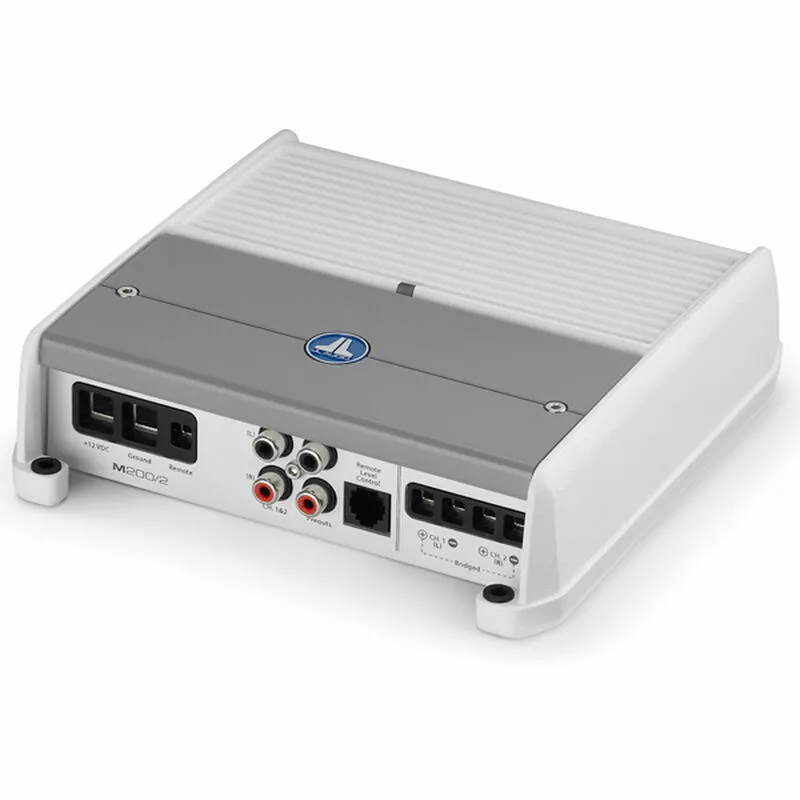The M200/2 includes a configurable, 12 dB / octave filter that offers continuously variable cutoff frequency selection from 50-500 Hz. This amp provides the power you need for your marine speaker and stereo system. Built with stainless steel hardware for durability to last in a marine environment while the white and gray powder-coated finish features a gasketed cover for the controls.