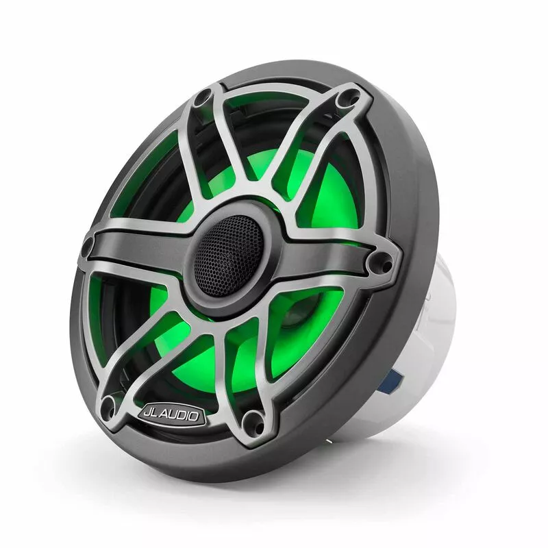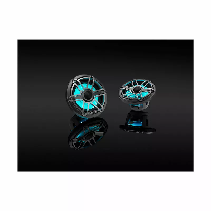 JL AUDIO M6-650X-S-GmTi-i 6.5″ Marine Coaxial Speakers, Gunmetal and Titanium Sport Grilles with RGB LED Lighting