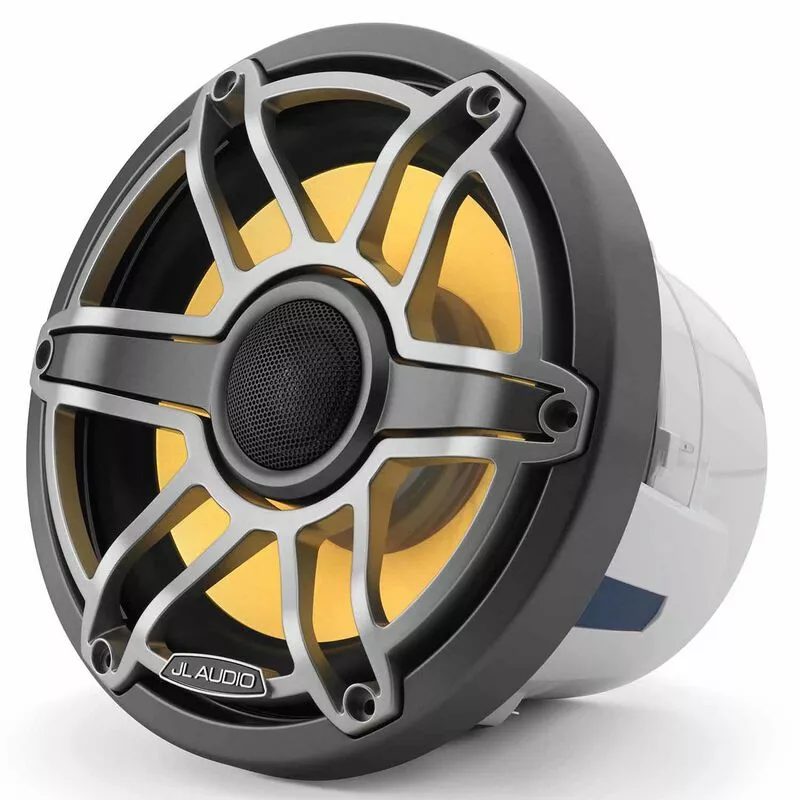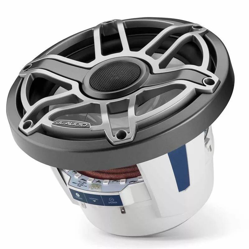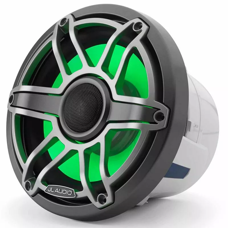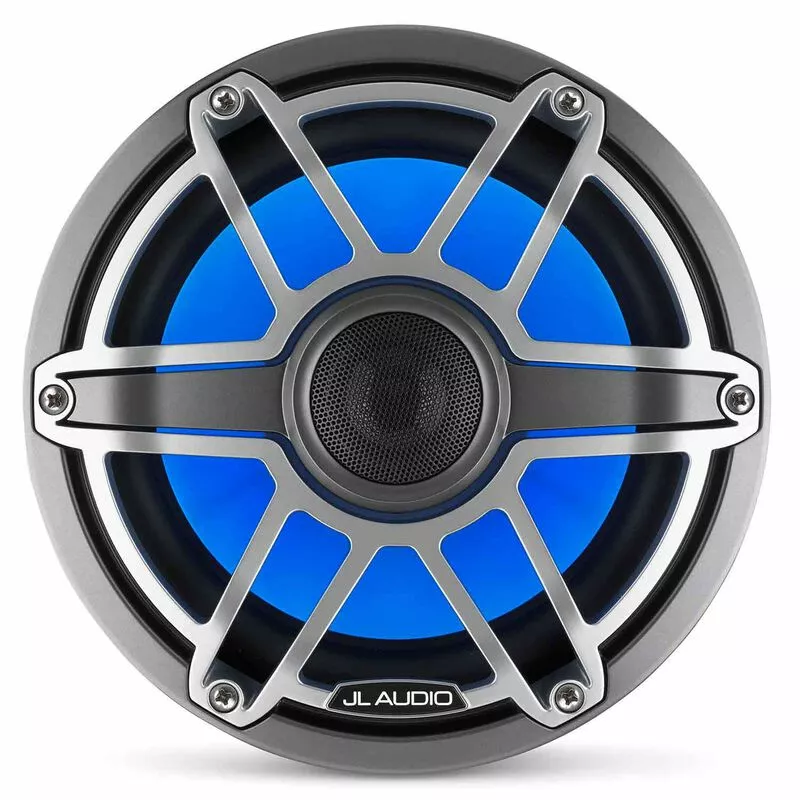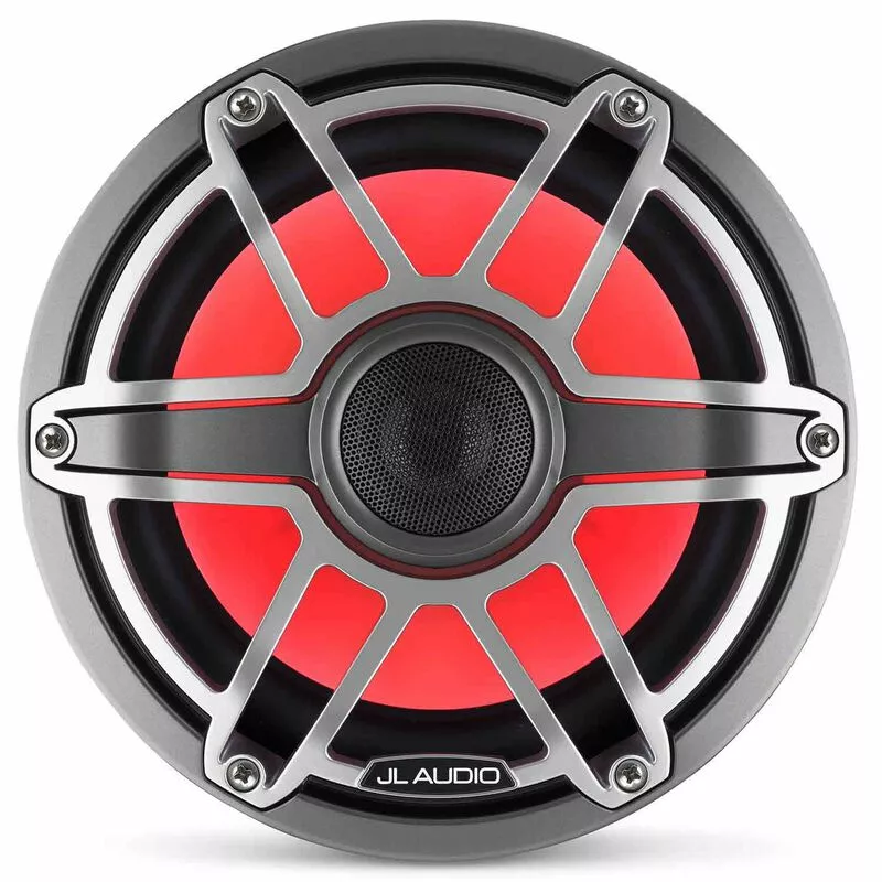 JL AUDIO M6-880X-S-GmTi-i 8.8″ Marine Coaxial Speakers, Gunmetal and Titanium Sport Grilles with RGB LED Lighting