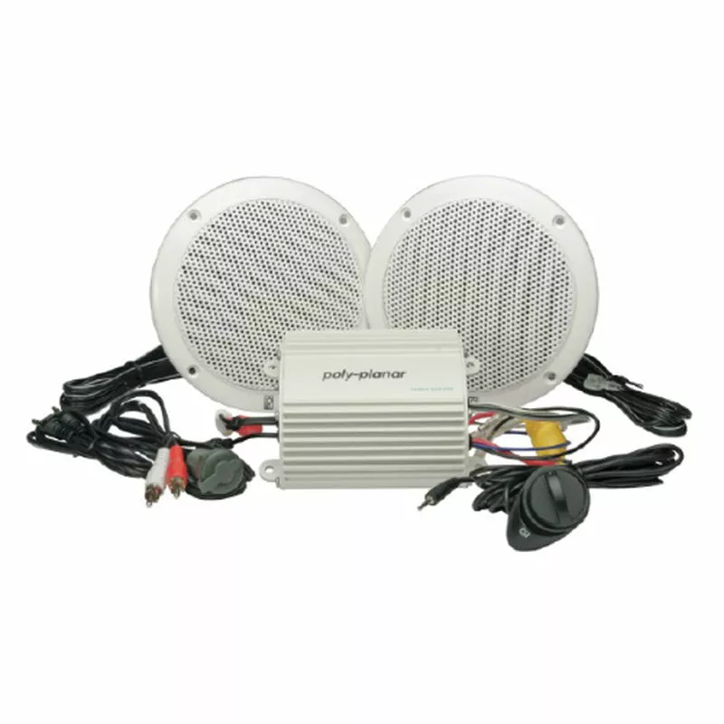 The IC3.5PM adapter and volume control can be mounted on the dash or inside the stowage compartment. And the MA-4055 5″ waterproof speakers offer crisp, clear sound on the go.Â