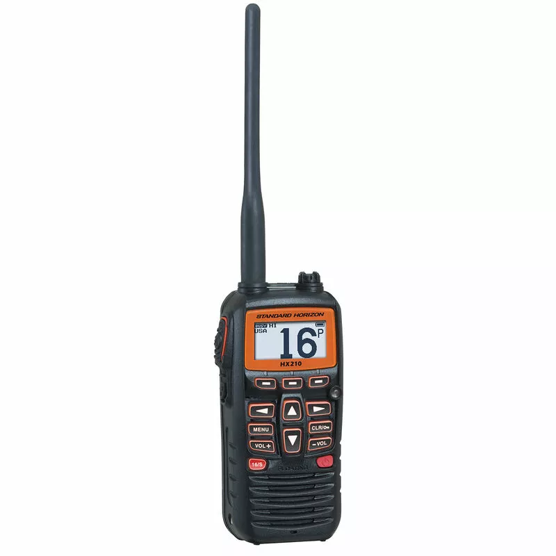 HX210 is an affordable floating handheld VHF radio with an FM broadcast band receiver and high-capacity Lithium-ion battery.